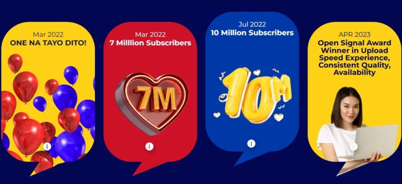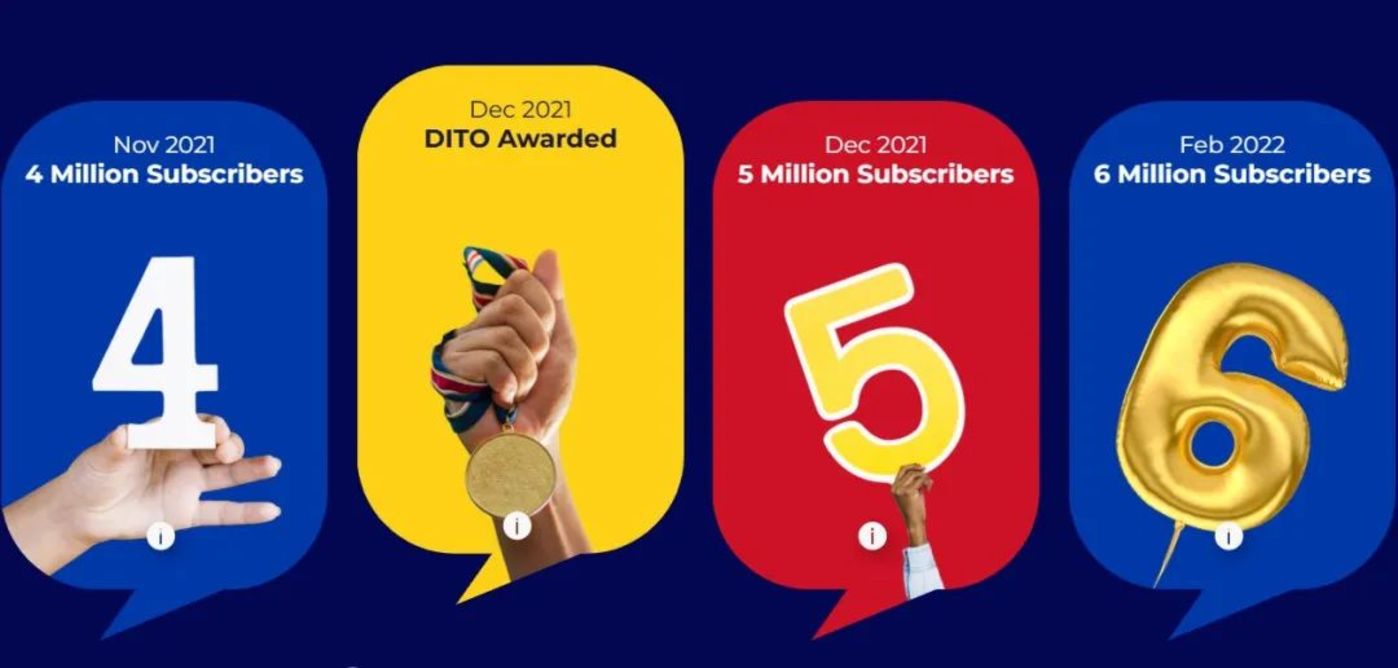2021年3月,DITO电信在达沃和宿务的15个城市正式启动商业运营,短短3个月时间就实现了1百万用户的里程碑。到2022年3月庆祝商业运营一周年之际,DITO电信在菲律宾全国已经发展了6百万用户,建成5000座通信塔,铺设了总长22000公里的光纤,超过其他两家运营商年均建设量的数倍。