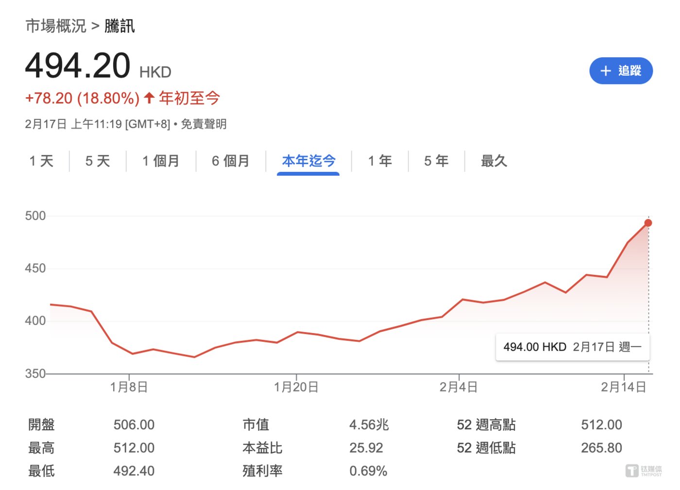 资本市场方面,2月17日上午,受上述消息影响,港股开盘腾讯控股(0700.HK)一度涨逾7%,最新涨3%,报约494港元/股,年初至今累计涨18.8%;此外,知乎(02390.HK)涨超18%,腾讯音乐(01698.HK)涨超7%,而百度港股(09888.HK)跌超5%。