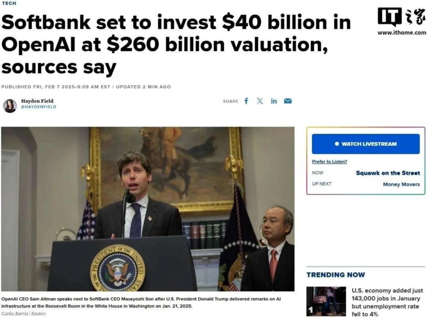 而且,OpenAI刚与日本软银集团敲定了400亿美元的新一笔融资金额,投前估值已经达到2600亿美元。
