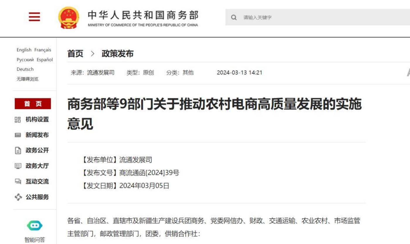 有了快递的物流,还需要配合不断发展的供应链,商务部等9部门发布的《关于推动农村电商高质量发展的实施意见》提出,要形成集货、加工、配送、网销等统一供应链条,以提高乡村产品上行效率。
