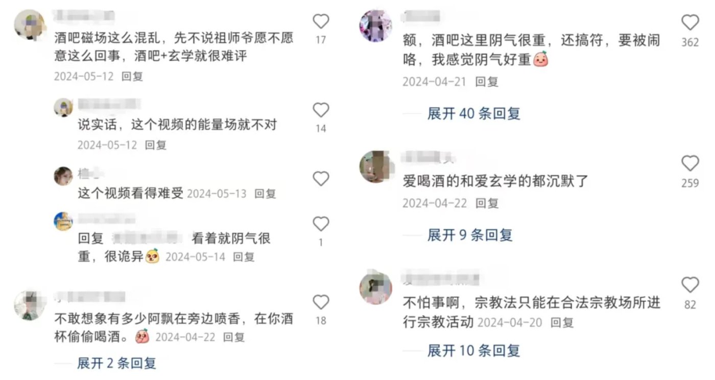 在小红书搜索玄学酒吧,热门贴下几乎都少不了质疑之声。“酒吧+玄学,祖师爷能愿意吗?”“真正的修道之人不会来搞这种东西。”“看着好怪,阴气重”……