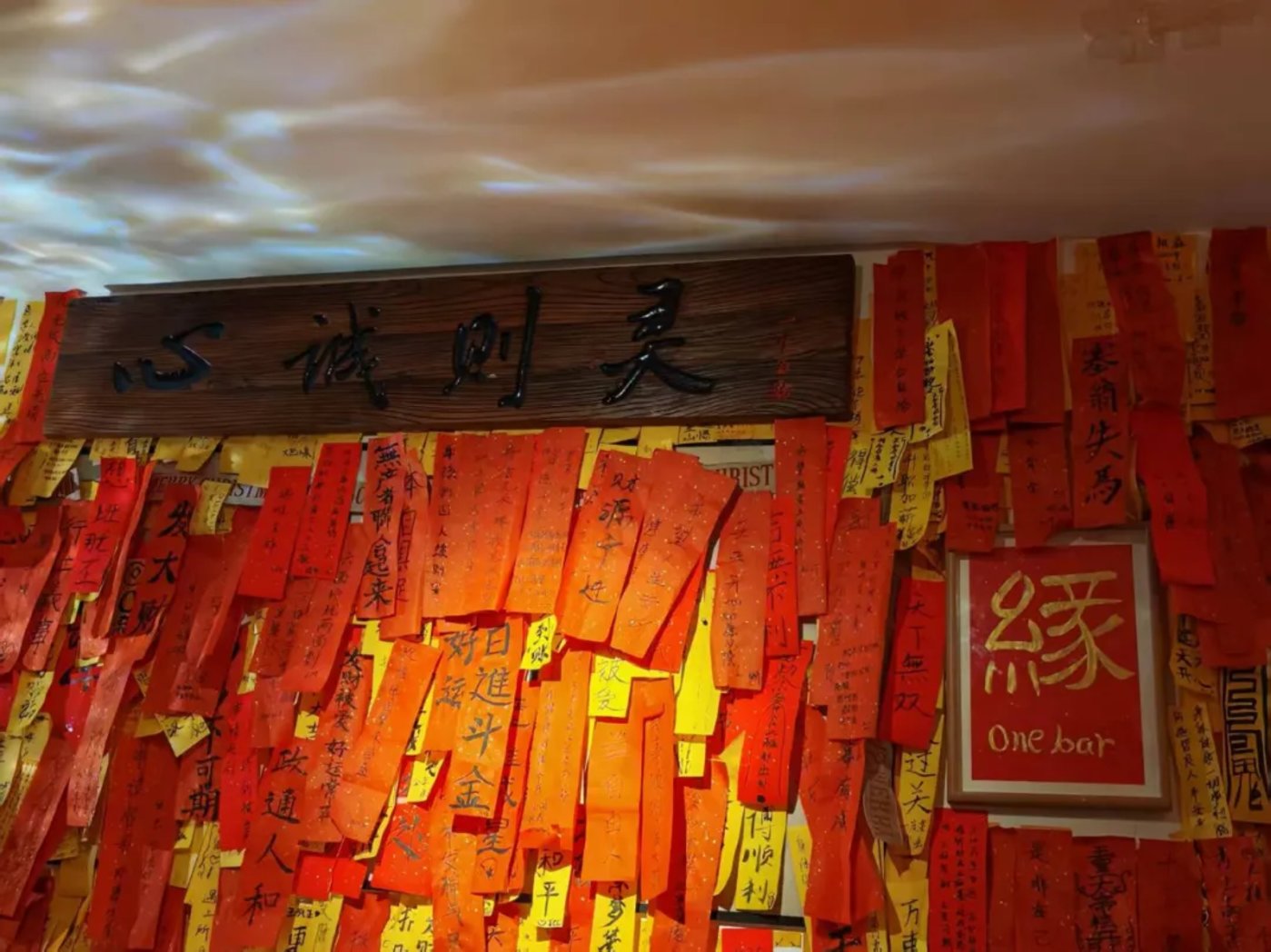 “这算是玄学还是心理学?”在我的提问下,Andy再次挥挥手,指向店里巨大的符纸墙,“不重要,心诚则灵嘛。”