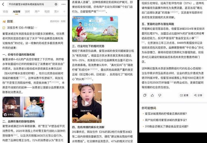 微博智搜在回答中提到了消费平权、品牌形象的防御性建构和危机传播的娱乐化消解,让我们看到了更多的维度,也再一次印证了微博在中文舆论场里的“阵地优势”;