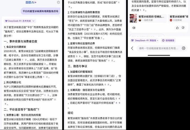 比如微博以前的搜索体验差强人意,直接原因就是基于关键词的搜索技术,导致来自权威媒体、行业大V的优质内容“沉没”。接入DeepSeek R1后,原本零散、碎片化的优质信息,被高效整合成清晰、逻辑性强且具备参考价值的搜索结果,在用户体验上有了极大改善。