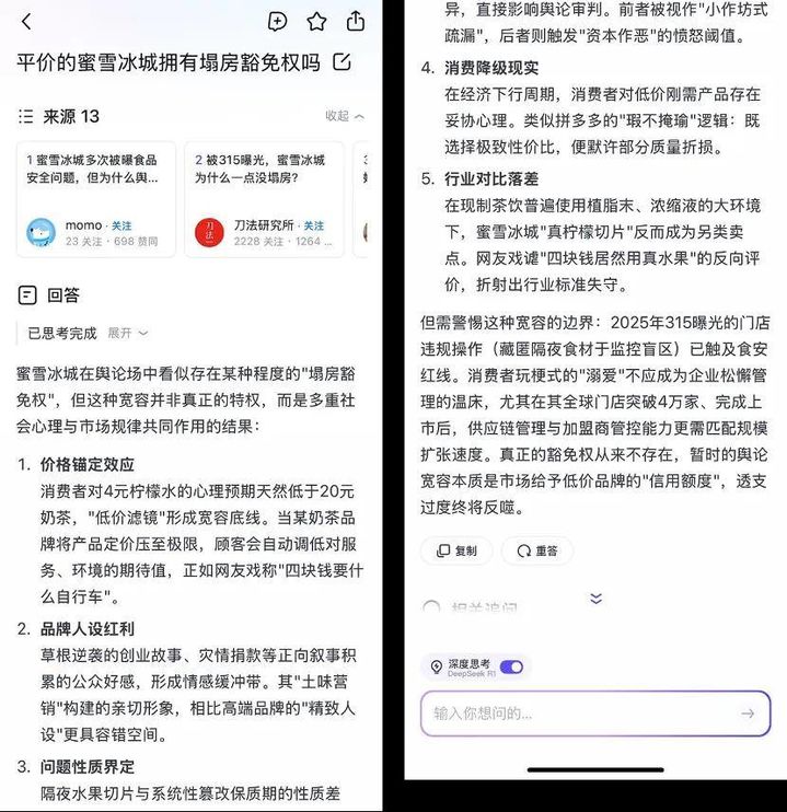恰恰是这个问题的答案,让我们对“深度搜索”有了更深刻的认知,绝非是一场同质化的竞赛,而是内容差异化的较量。
