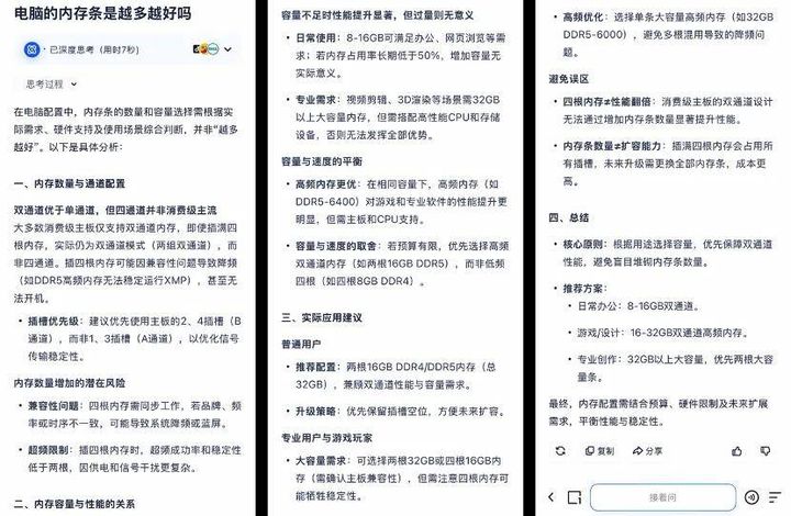 这是一个很多人选配电脑时都会纠结的事,看起来比较专业,其实里面留了一个坑,用来测试不同AI搜索的用户友好性。