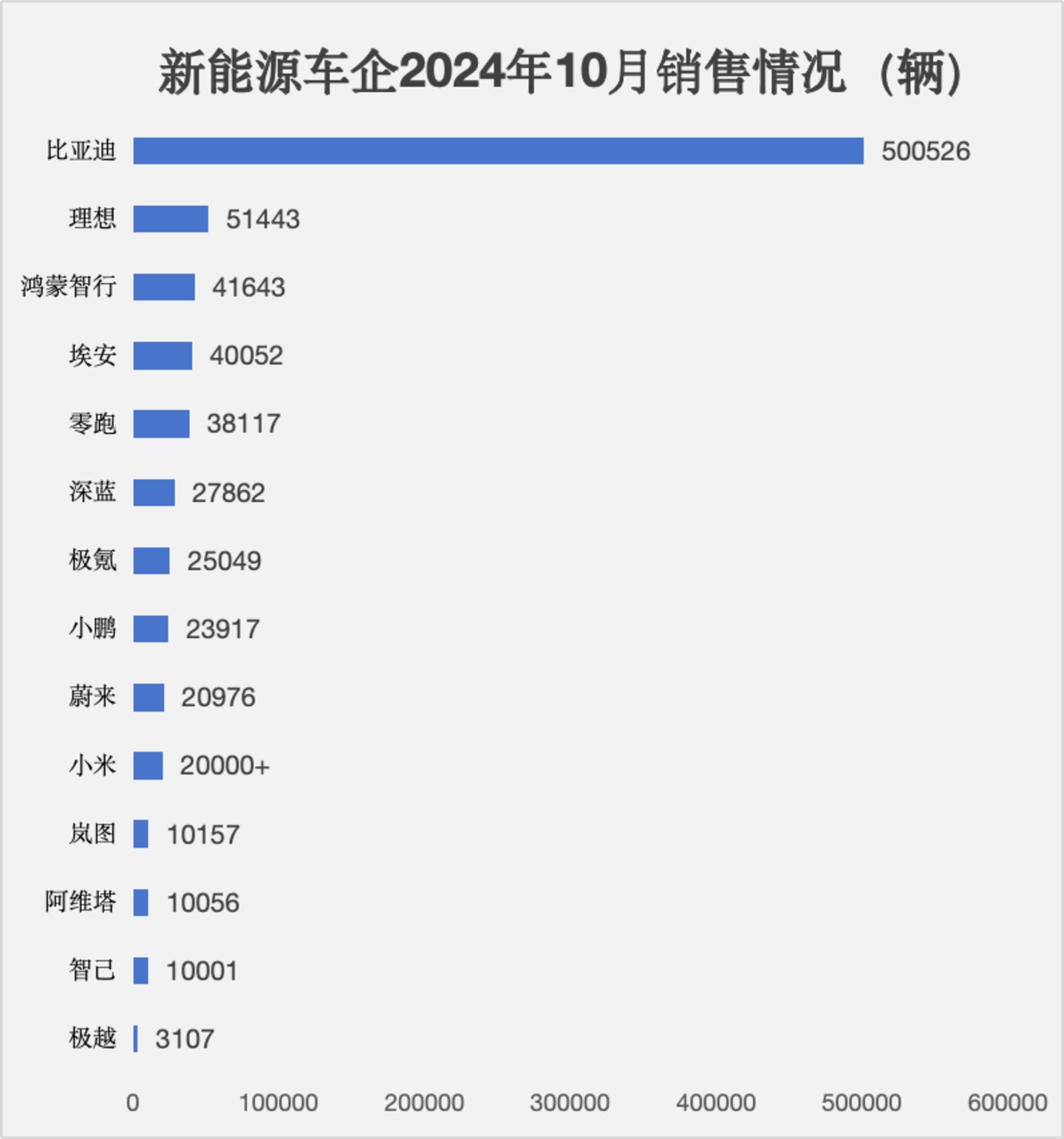 前三名之外,极氪、小鹏、小米的10月交付量均创下历史新高。