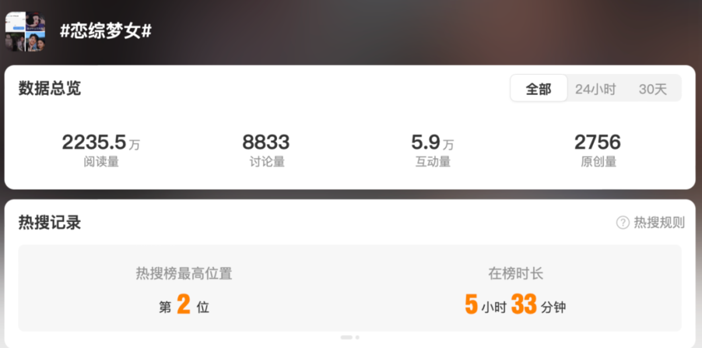 大结局点映之后,一个名为#恋综梦女#的词条登上了微博热搜总榜TOP2,其实已经给出了这个问题的答案。