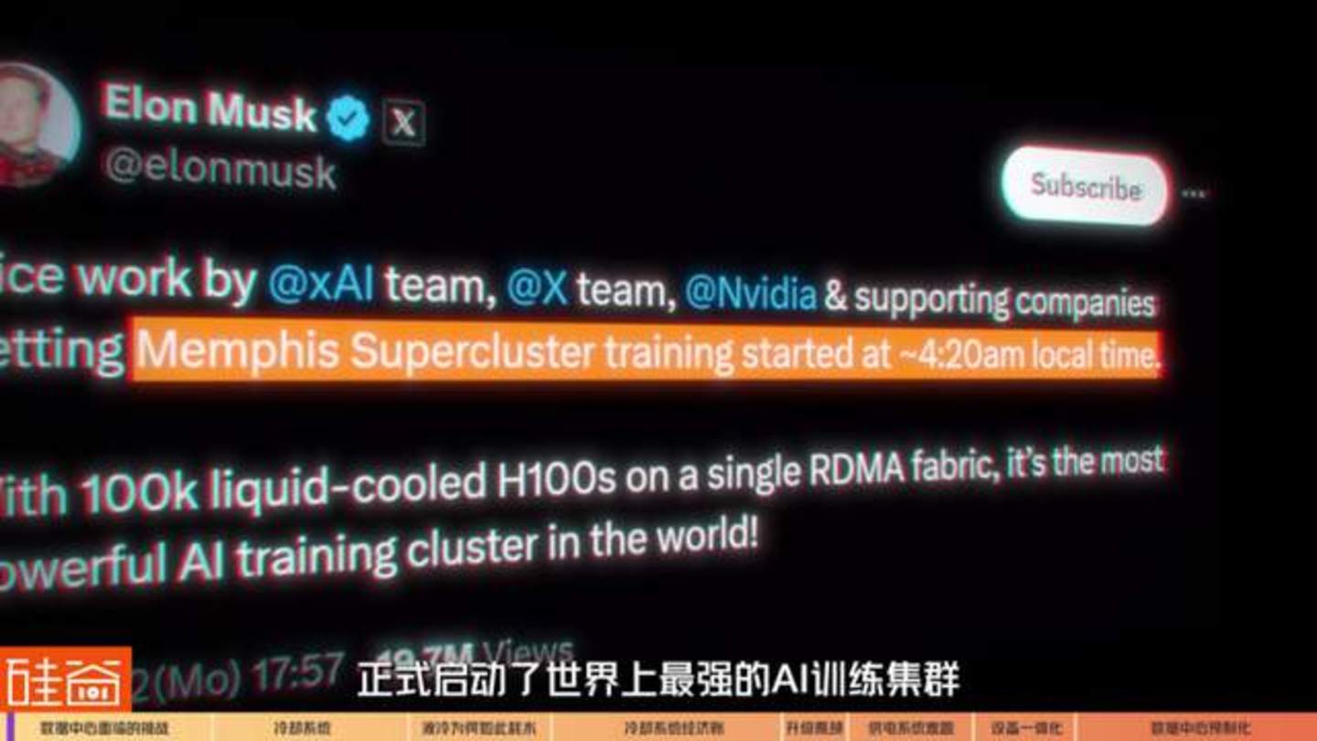 这个训练集群建设在美国田纳西州孟菲斯市,集合了10 万个液冷H100芯片。