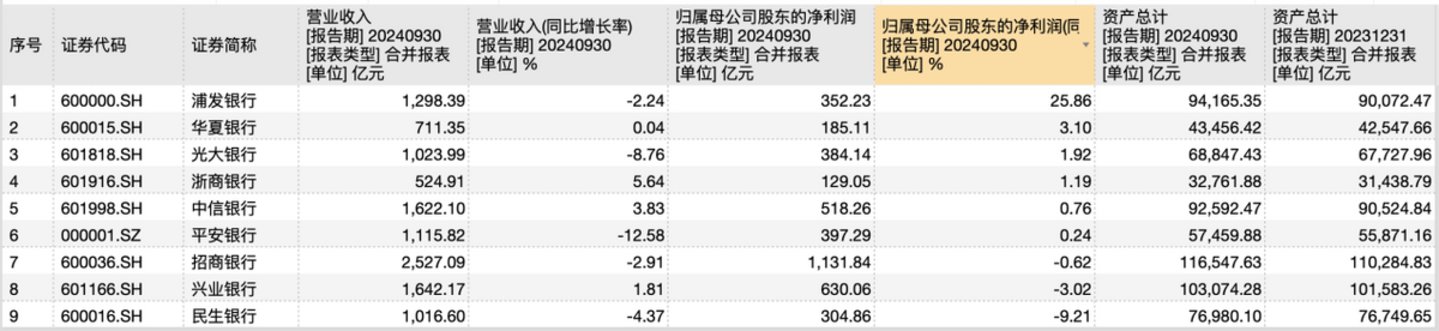 值得一提的是,浦发银行资产资产规模在2024年中报超越中信银行后,三季报末继续领先。