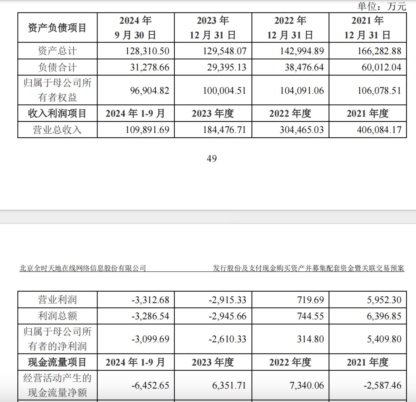 钛媒体APP注意到,早在2021年天地在线就开始拓展新业务,包括落地虚拟数字业务、布局元宇宙等,奈何新业务始终不能产生盈利效应。其中,虚拟数字业务虽然于2022年9月落地,但截至今年上半年,该部分业务收入仅198万元,占营收比例为0.27%。此外,伴随公司传统业务的持续收缩,近年公司业绩不断下滑,2023年,公司录得上市以来最差业绩并陷入亏损。2024年前三季度,亏损延续。