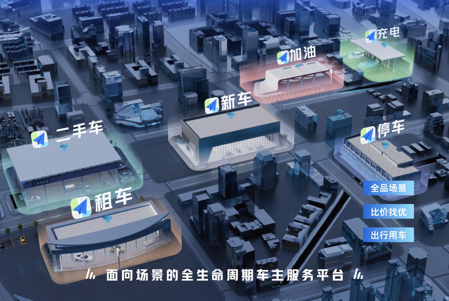 高德车服联合车主生态圈上下游产业链企业,依托出行海量用户,聚合打造了涵盖“充电,加油,新车、二手车租车”等全品类场景服务,致力于为车主在全生命周期内提供比价找优、出行用车的解决方案。