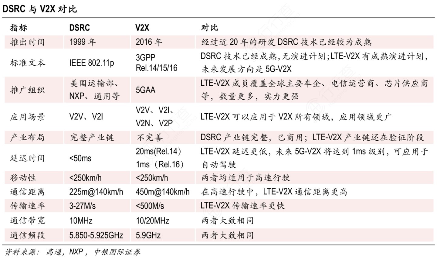 此前,国际上有两套主流的V2X通信技术规范,一套由美国和欧洲主导的DSRC(Dedicated Short Range Communication,专用短距离通信技术),另一套是由中国主导的C-V2X(Cellular Vehicle-to-Everything,基于蜂窝网络的车用无线通信技术)。