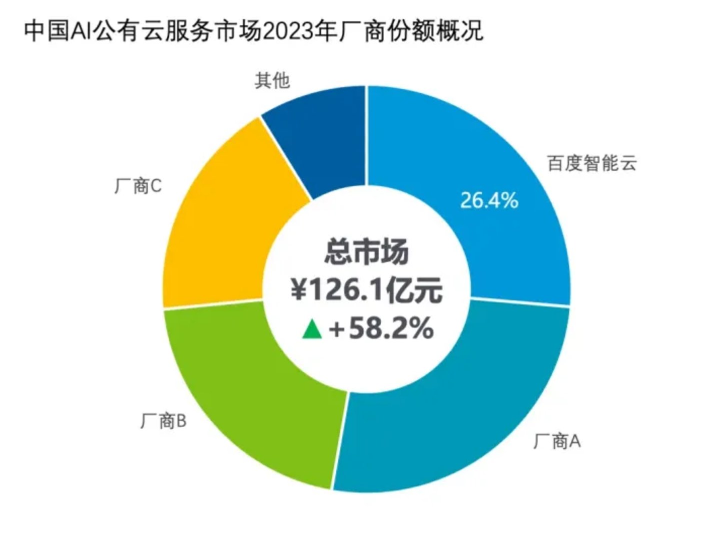 《中国人工智能公有云服务市场份额,2023》报告显示,中国AI公有云服务市场,百度智能云市场份额排名第一,占比达26.4%,连续5年蝉联中国市场第一。