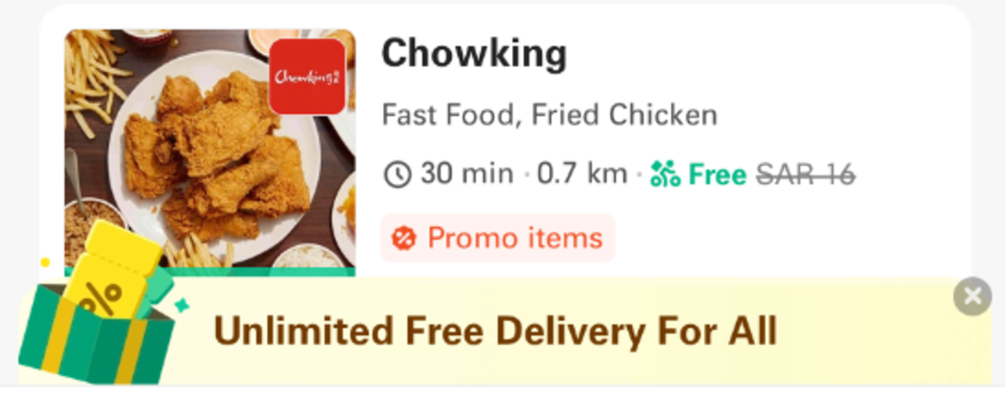 2024年9月9日,作为美团外卖境外版本的Keeta在沙特阿尔卡吉低调开城,一个月后杀入首都利雅得。和在中国香港开城阶段类似,Keeta在沙特推出了首单半价、免配送费、晚到必赔等手段,尝试用足够大的优惠力度从竞争对手那里争夺用户。