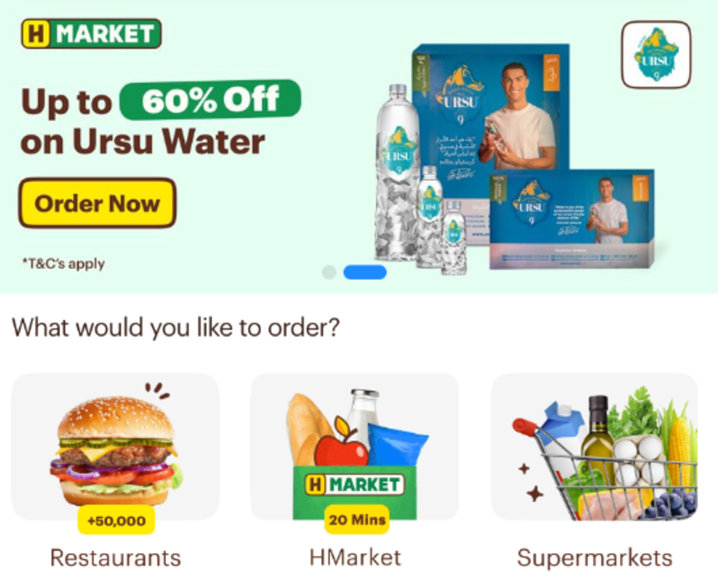 H-Market展示在首页醒目位置,图源Hunger Station截图