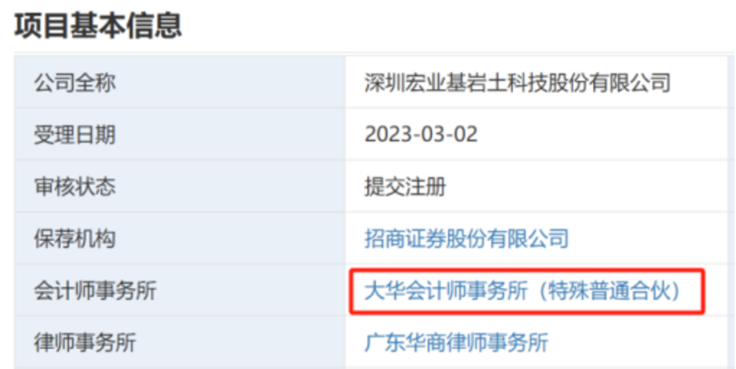2023年8月,宏业基在注册制下IPO过会,并于2023年12月提交注册。本以为将风平浪静,但2024年5月10日,江苏监管局披露了对大华所的行政处罚决定书。罚单显示,因大华所对金通灵2017年至2022年年度财务报表审计时,未勤勉尽责,所出具的审计报告存在虚假记载,依照《证券法》相关规定,江苏证监局责令大华所改正,并暂停大华所证券业务6个月,并罚款合计4402.08万元,三位涉事注册会计师合计被罚款270万元。同时,深交所对大华所公开谴责,实施6个月暂不受理其文件的“资格罚”。