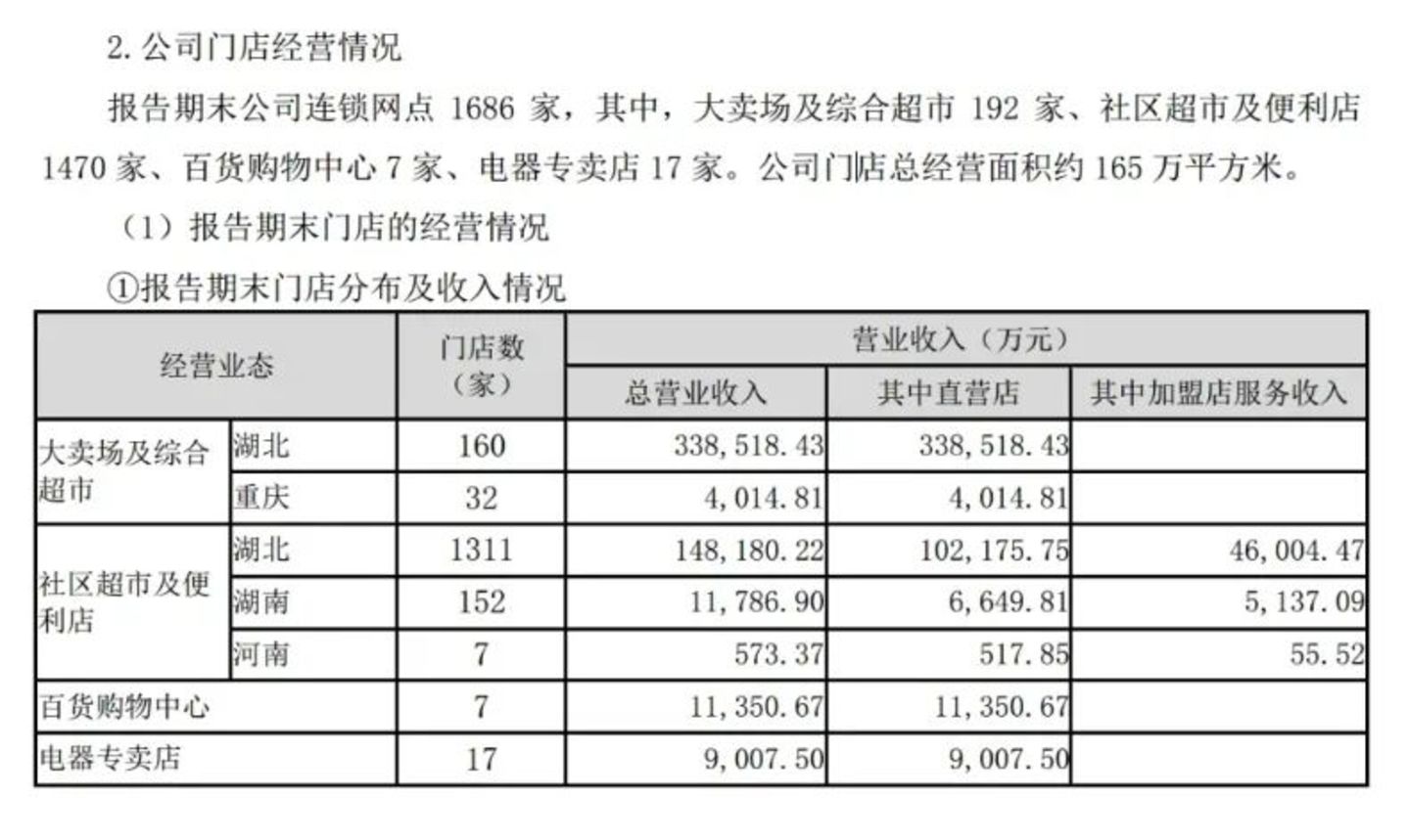 截至上半年末,中百集团公司连锁网点1686家,其中,大卖场及综合超市192家、社区超市及便利店1470家、百货购物中心7家、电器专卖店17家。