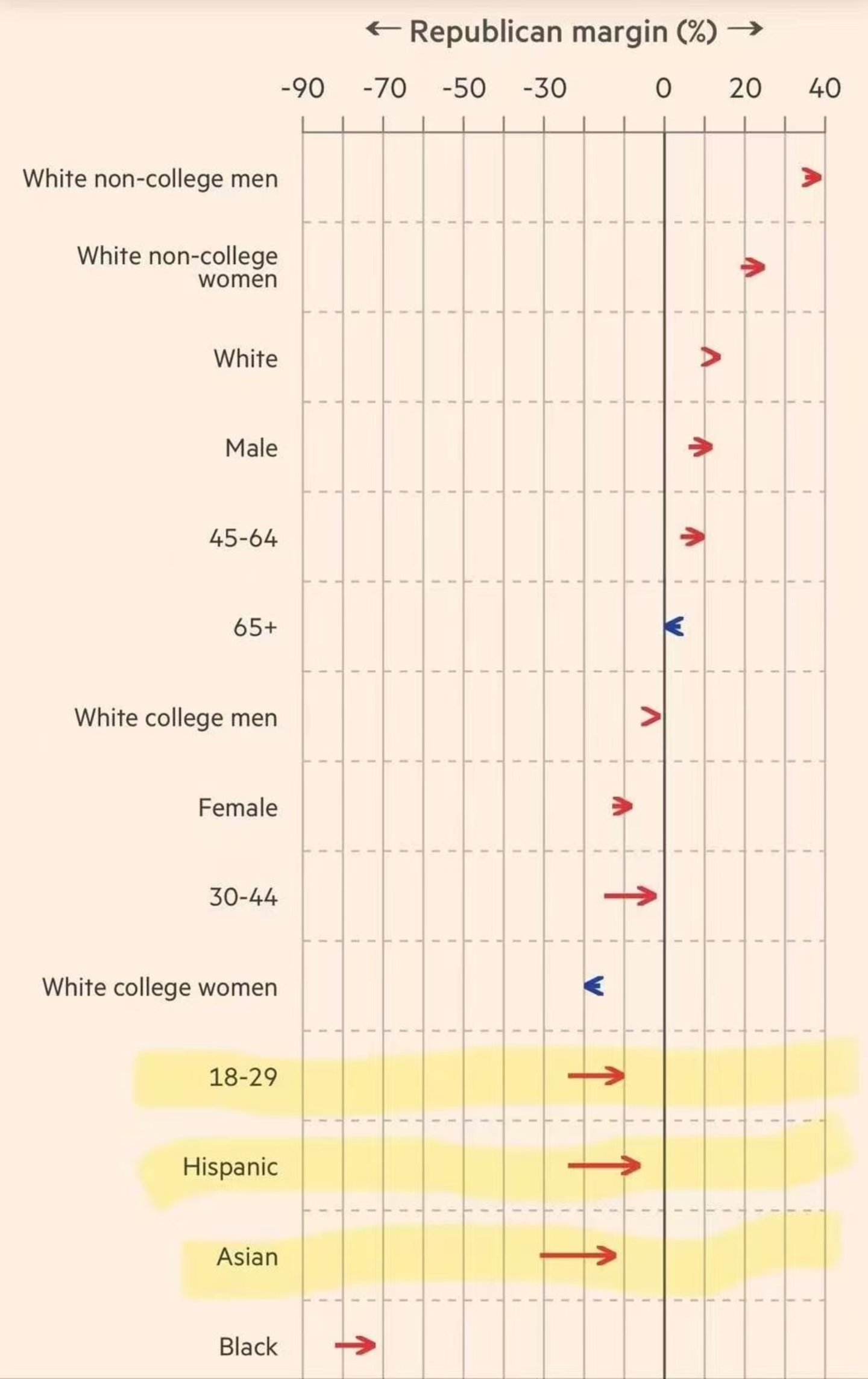 而在男性群体中,甚至连哈里斯的关键基本盘——黑人群体,对她的支持力度也并非想象中那样遥遥领先。以至于奥巴马在选前最后时刻前往最重要的摇摆州宾夕法尼亚州,努力争取黑人选票。奥巴马直言,根据他所知,选民对于哈里斯的热情低于他参选时,一些黑人男性甚至退出选举,奥巴马对此深感困惑。他甚至不惜公开斥责黑人同胞:“一个是和你们一样长大的人,了解你们,和你们一起上大学,了解这些经历带来的挣扎、痛苦和快乐。而特朗普一贯无视你们,不仅无视(黑人)社区,也无视你们这个人。对于这次大选,你们打算袖手旁观吗?”选举结果印证了他的焦虑,哈里斯以悬殊的支持率,输掉了最重要的摇摆州。