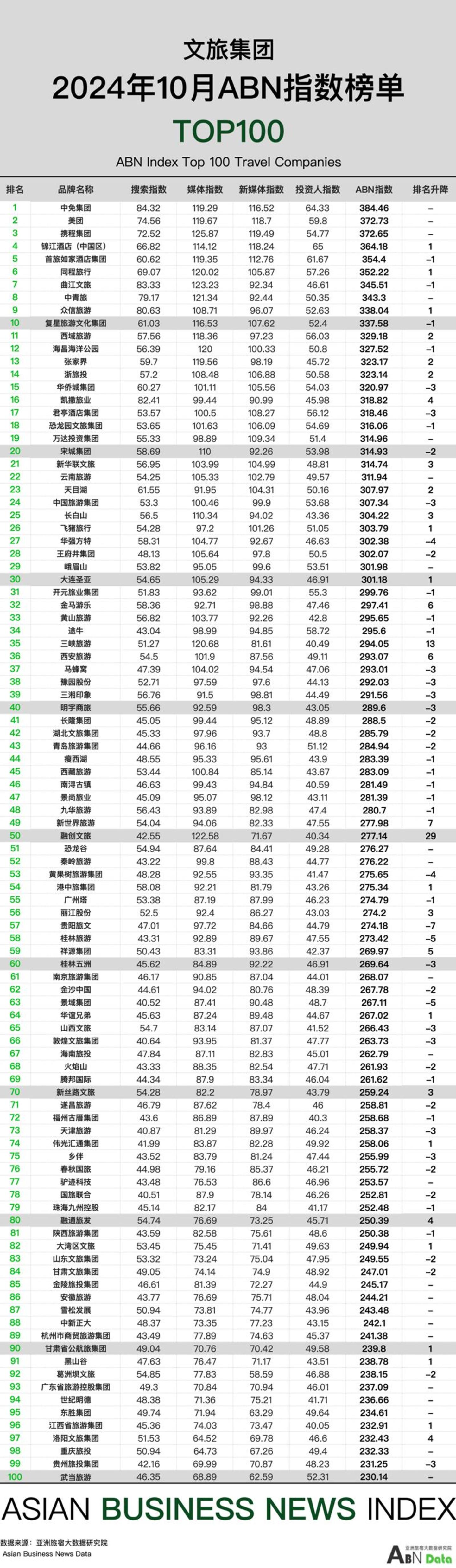 综述|2024年10月,文旅企业的媒体指数和新媒体指数稳中有升,监测均分达到113.43,119.19,投资人指数保持平稳。