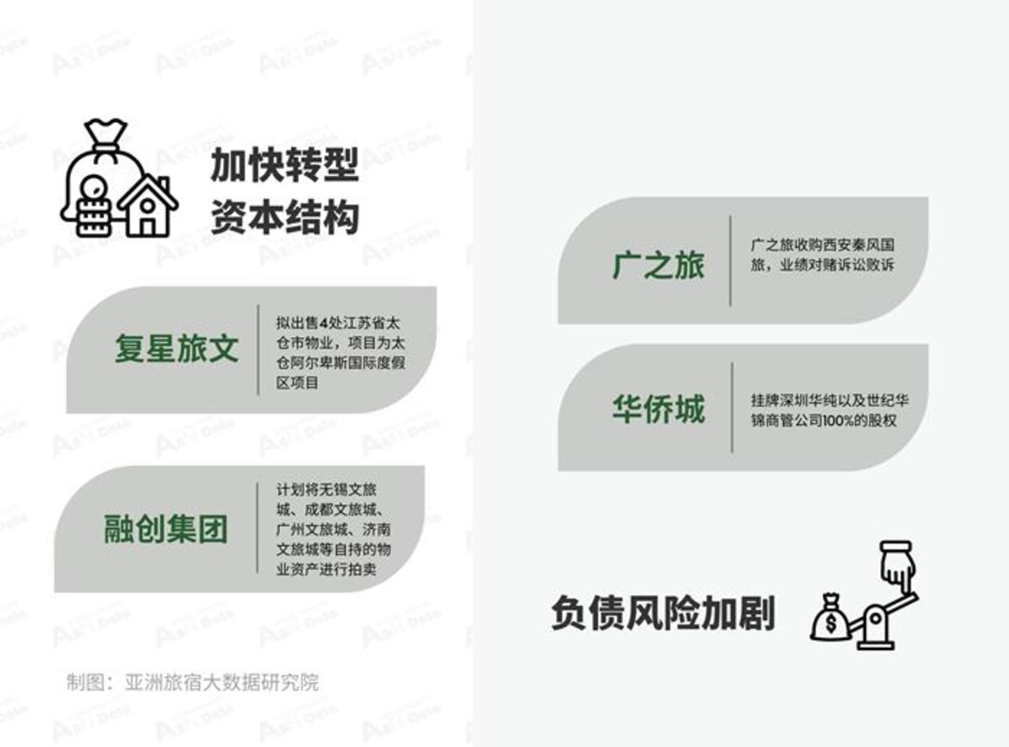 旅企负债风险加剧加速资产重组 | 10月,多家旅企由于负债风险加剧,加快转型资本结构,加大轻资产战略进度。不过,由于众多历史原因,进展相对缓慢。