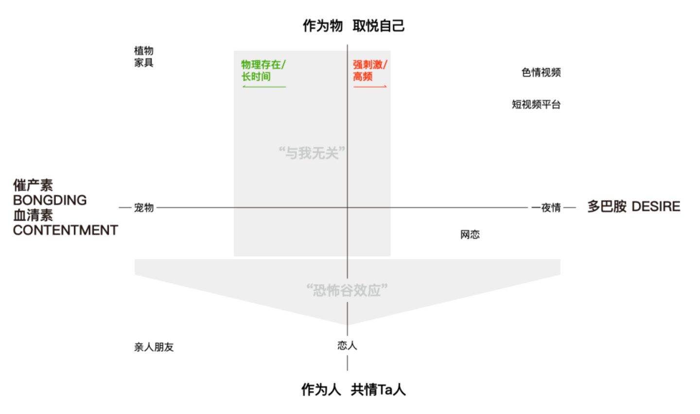 腾讯研究院《十问“AI陪伴”》的报告中指出,多巴胺、催产素、血清素等与“陪伴”相关的神经递质,一些AI陪伴的产品设计都与提升这些化学物质的分泌有关。提升多巴胺需要靠增加刺激频率和强度,提升催产素和血清素则需要物理实体和长时间存在。