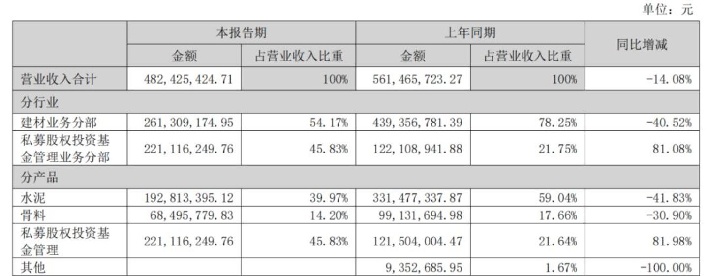 随着IDG的入局,四川双马的业务中心已经逐渐从水泥建材业务,切换至私募股权为主的投资业务。今年上半年,私募股权投资基金管理主营业务收入2.21亿元,已反超水泥业务的1.93亿元,成为四川双马新的营收支柱。