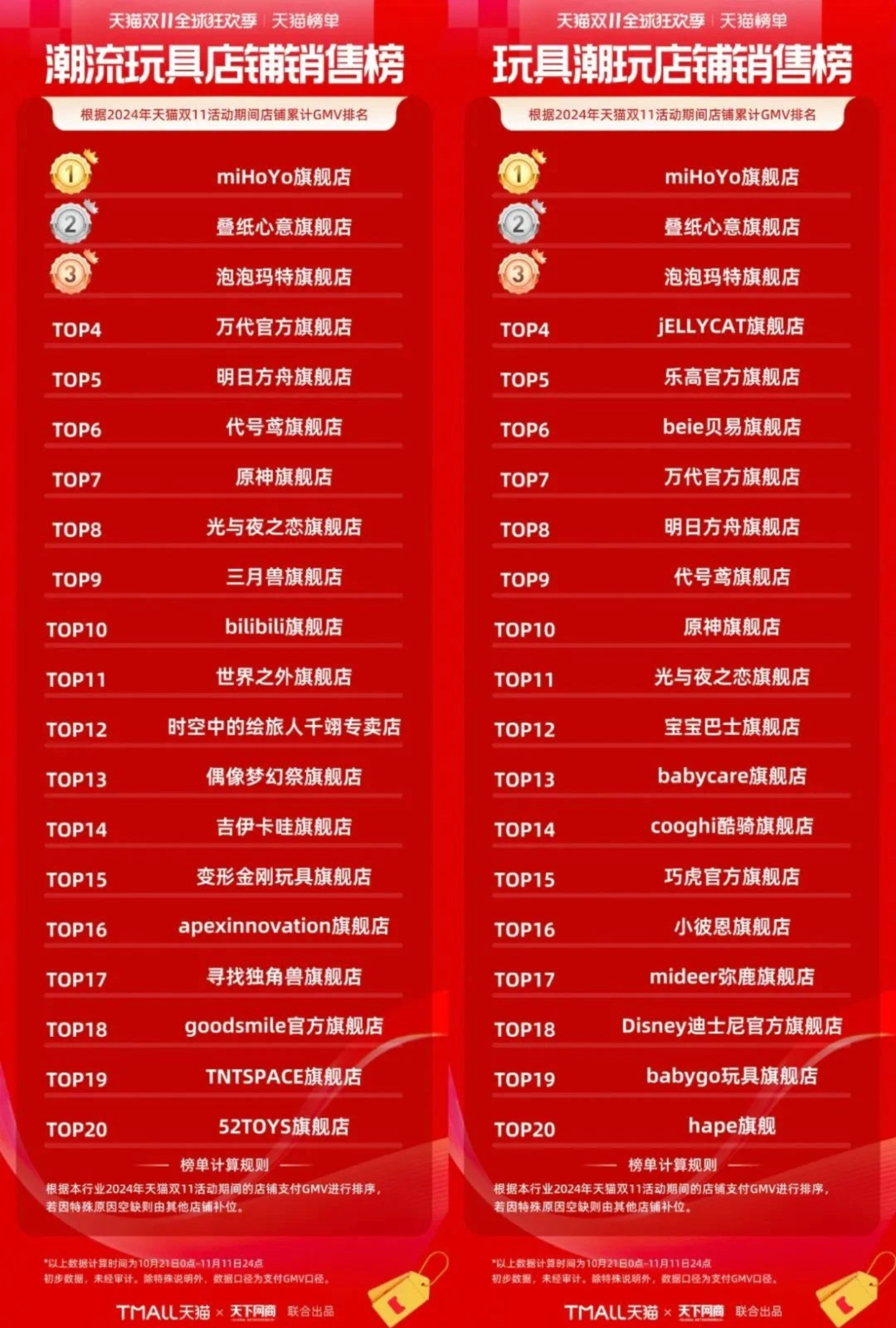 以群体文化认同为基础的二游也构建出多个大热IP,IP衍生品产业因而飞速崛起,成为支撑二游市场盈利的中流砥柱。根据今年天猫双十一相关榜单显示,《明日方舟》、《原神》、《暴雪》等二游旗舰店均榜上有名。其中,《崩坏3》、《原神》与《崩坏:星穹铁道》等米哈游旗下的二游手办单品销售额更是轻松突破百万。