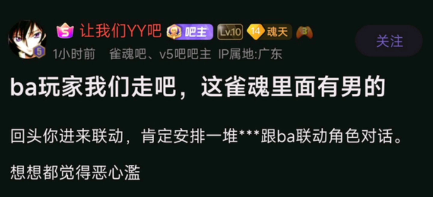 这已经不是二游玩家第一次表达对厂商的不满。上半年以来,先是《蔚蓝档案》联动《雀魂》引发玩家大规模抗议,再是《鸣潮》开服将第一卡池角色设置为男性的骚操作劝退男性用户,因不满剧情或主题设置而产生的动荡频频发生。