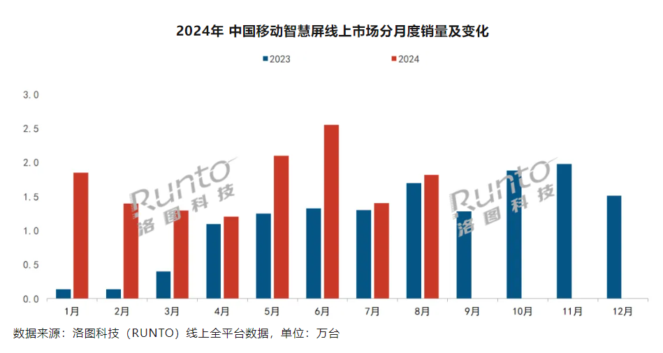 但在过了大促的虹吸效应后,进入三季度,RUNTO数据显示,中国移动智慧屏市场的增长速度已经开始明显放缓,7月和8月的线上全平台销量同比去年的涨幅仅有7.7%和5.9%,而以往这个数字,动辄就是70%以上。