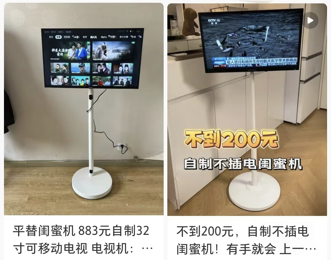 如今在小红书搜索“闺蜜机平替”,小到200,多也不超过800元,网友就能用三步教你自制闺蜜机,首先买一个显示屏,然后买个支架,最后拼起来。