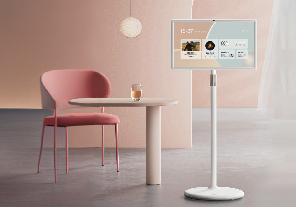 而移动智慧屏产品形态的特殊之处便在于支架和续航,将灵活性大幅提升,做到了位置可移动、角度可调节。
