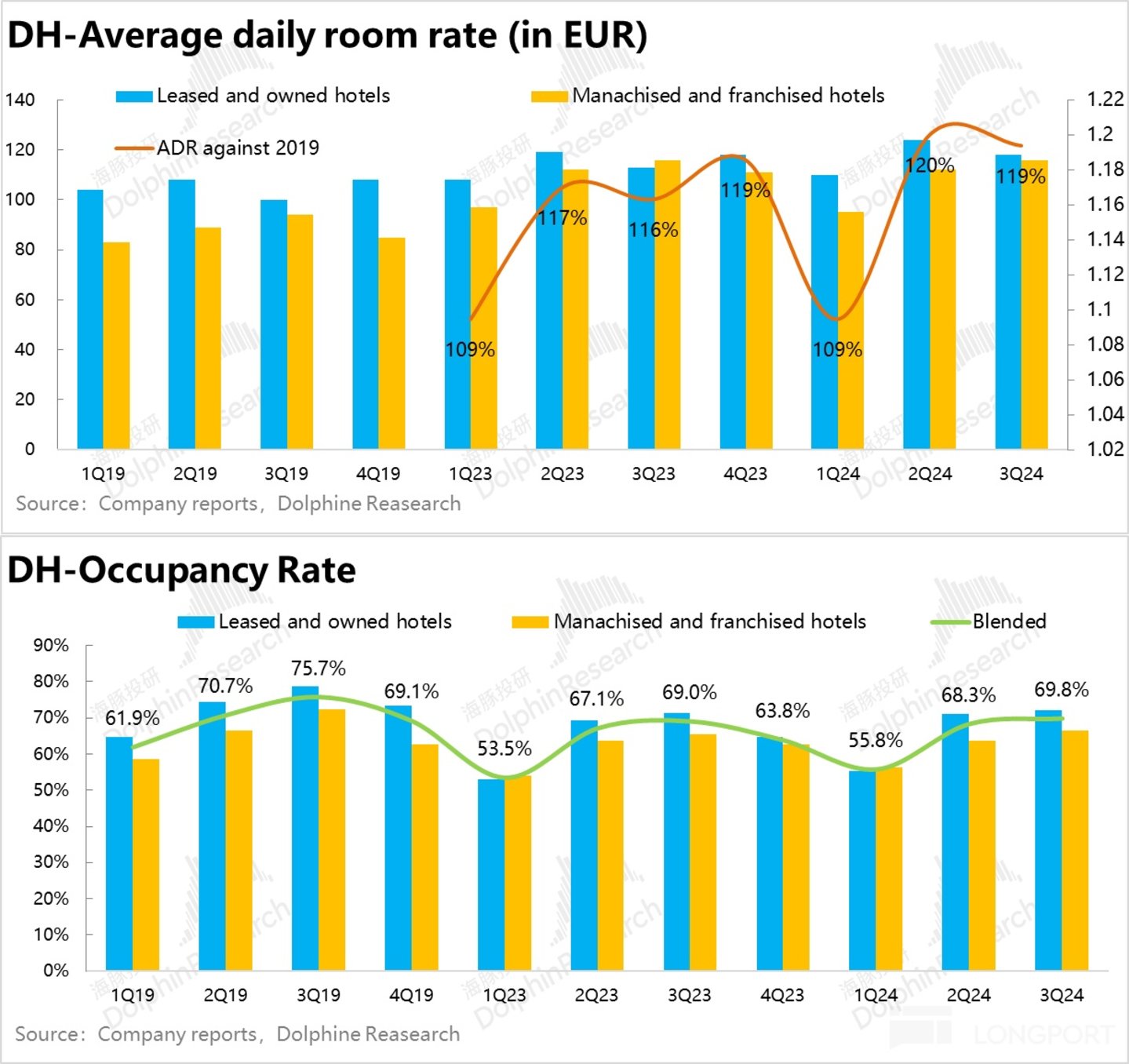 具体来看,本季入住率达 69.8%,同环比来看都有所提升,是 23 年以来的新高点。客单价(ADR)达 19 年的 119%,虽然环比上季的 120% 略有下滑,但仍在高位。不过欧洲杯和奥运双盛会过后,欧洲酒旅景气度能否继续保持高位也是有待观察的。