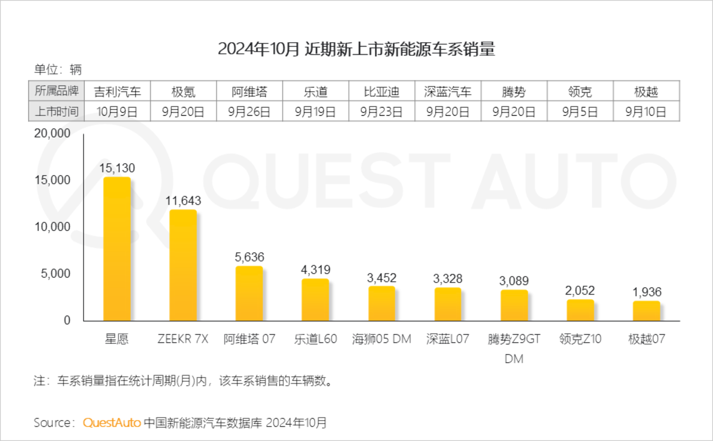 1、进入“金九银十”,多款重量级新车扎推上市,表现亮眼,其中吉利星愿上市当月销量即达到1.5万辆,ZEEKR 7X上市后首个完整月销量也突破万辆