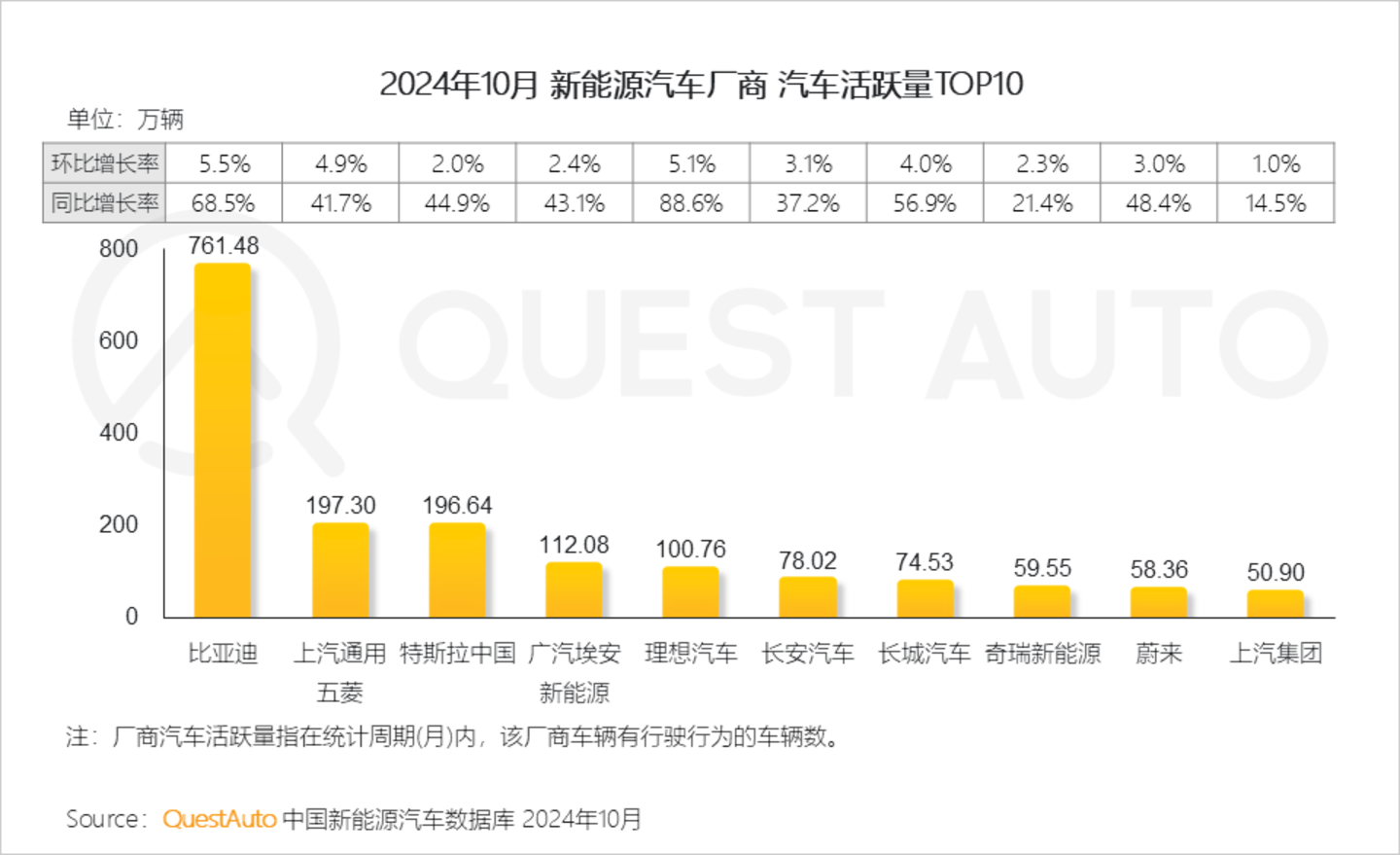 2、新能源厂商活跃量TOP榜