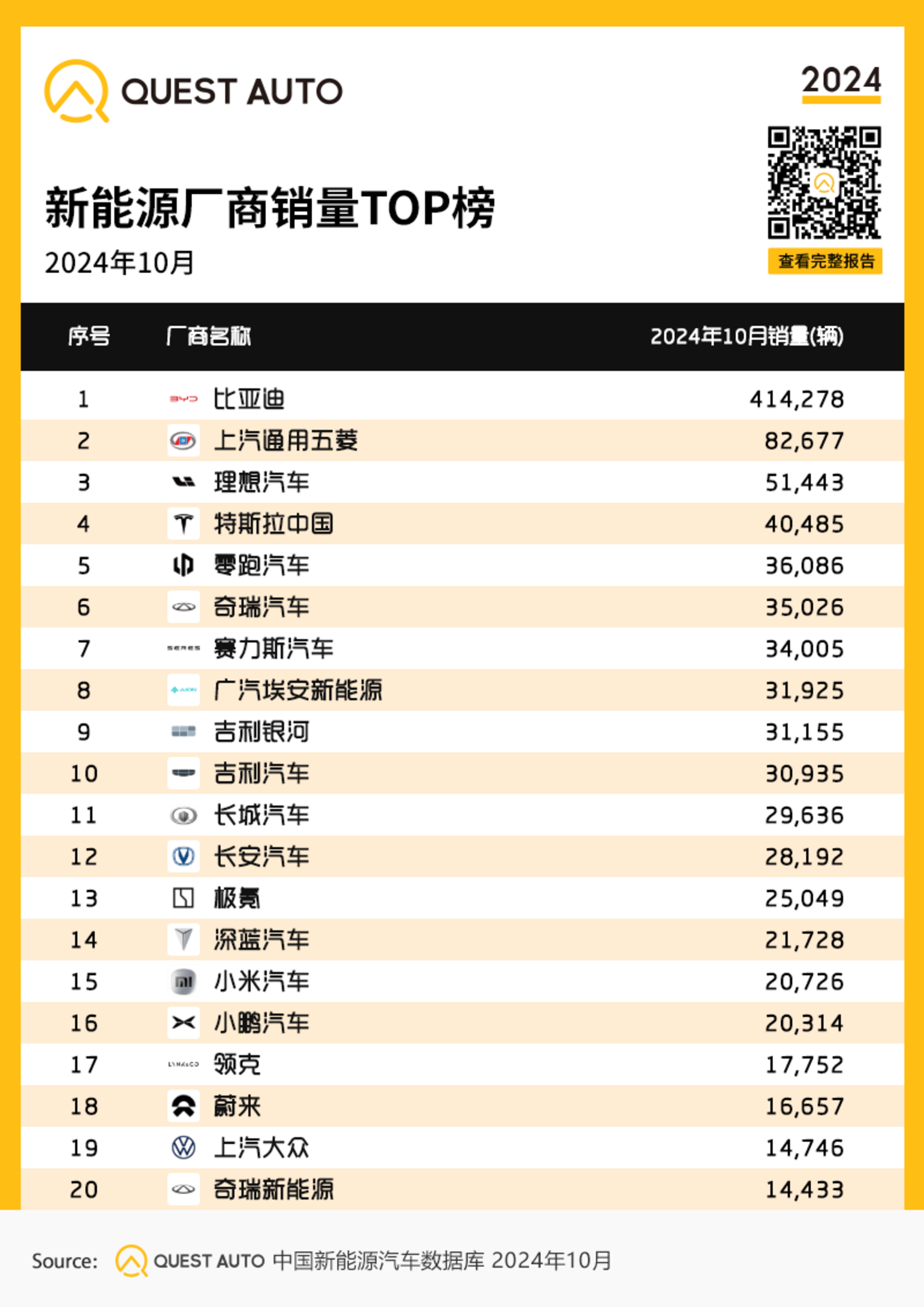 1、新能源厂商销量TOP榜