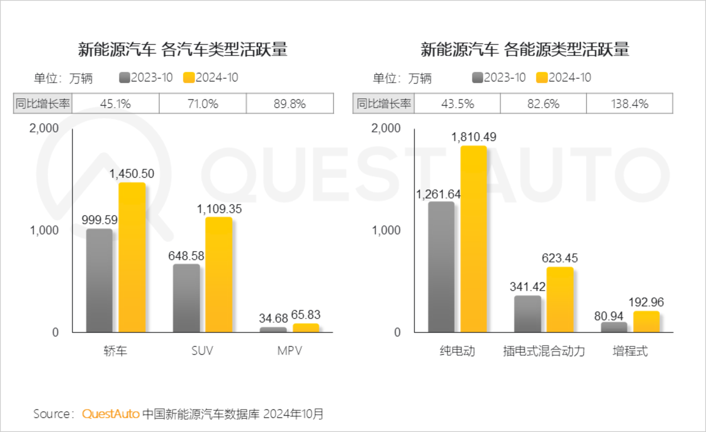 6、细分市场活跃量方面,轿车、SUV车型活跃量同比净增量均超450万辆;从能源类型来看,纯电动汽车活跃量已达1800万辆