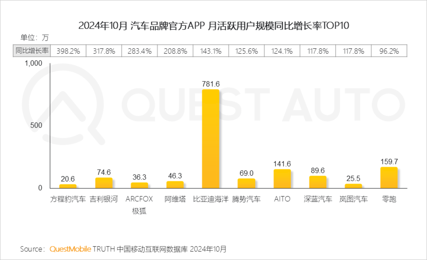 2、厂商活跃量方面,与去年同期相比,比亚迪、理想、长城同比增速均超50%