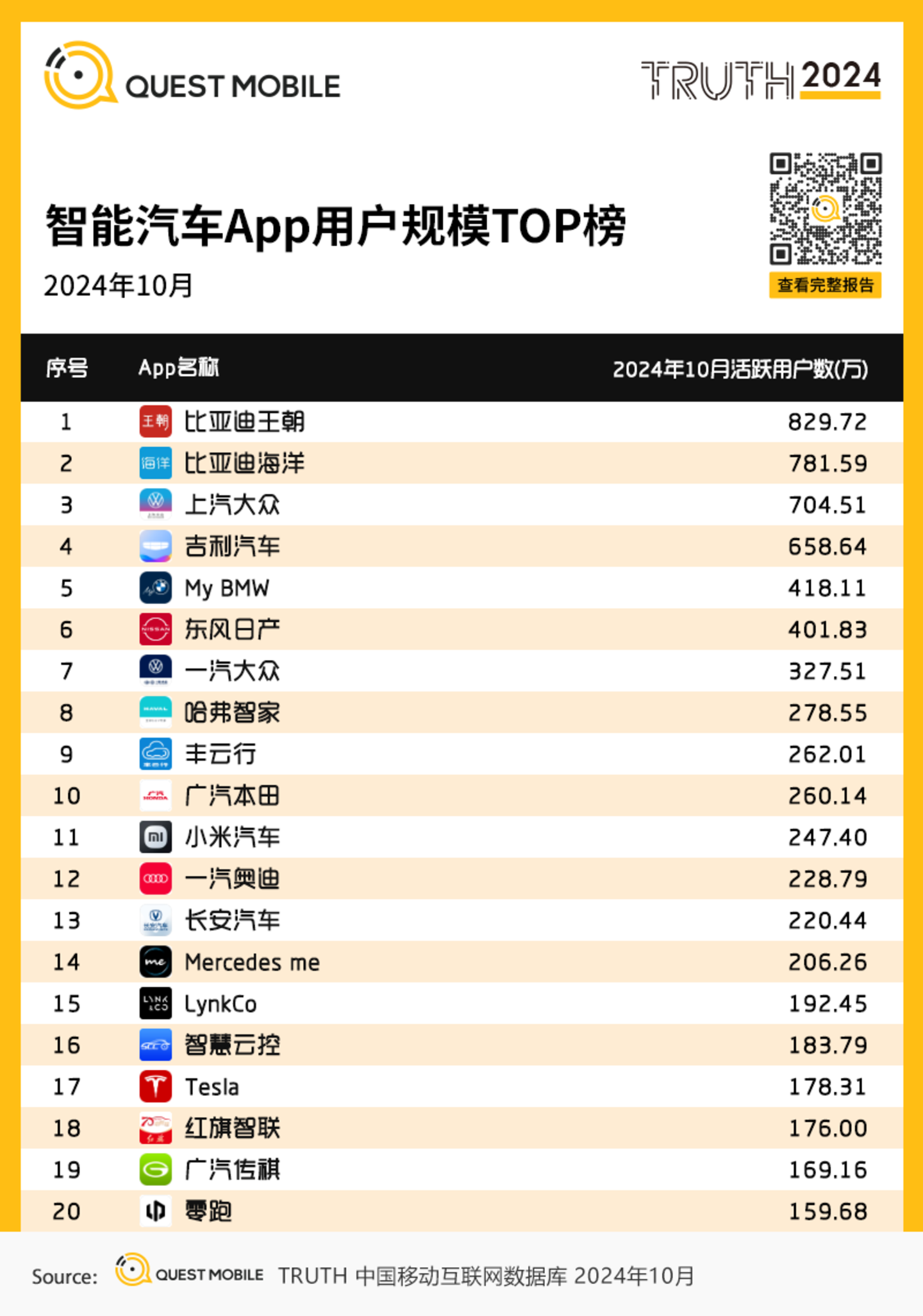 3、智能汽车App用户规模TOP榜