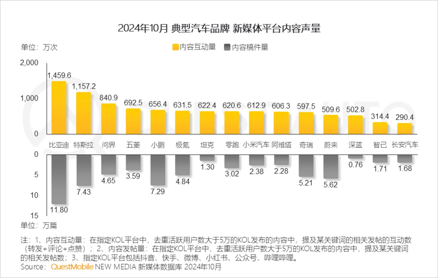 2、汽车品牌对于内容平台的重视与投放力度在不断加强,比亚迪、特斯拉的内容互动量超千万次,品牌影响力持续扩大