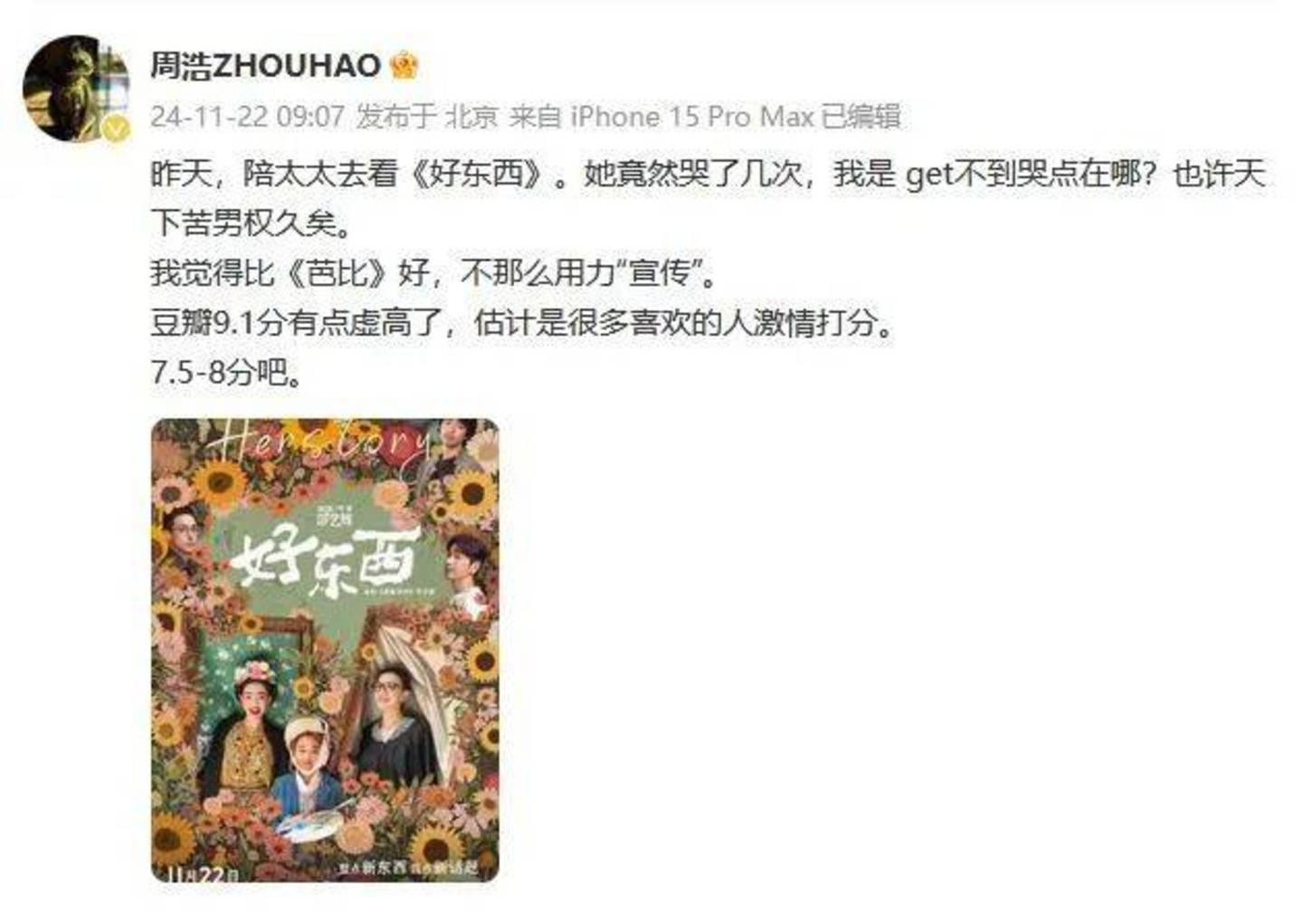 但又不可否认《好东西》仍是一部市场上限不够高的影片。
