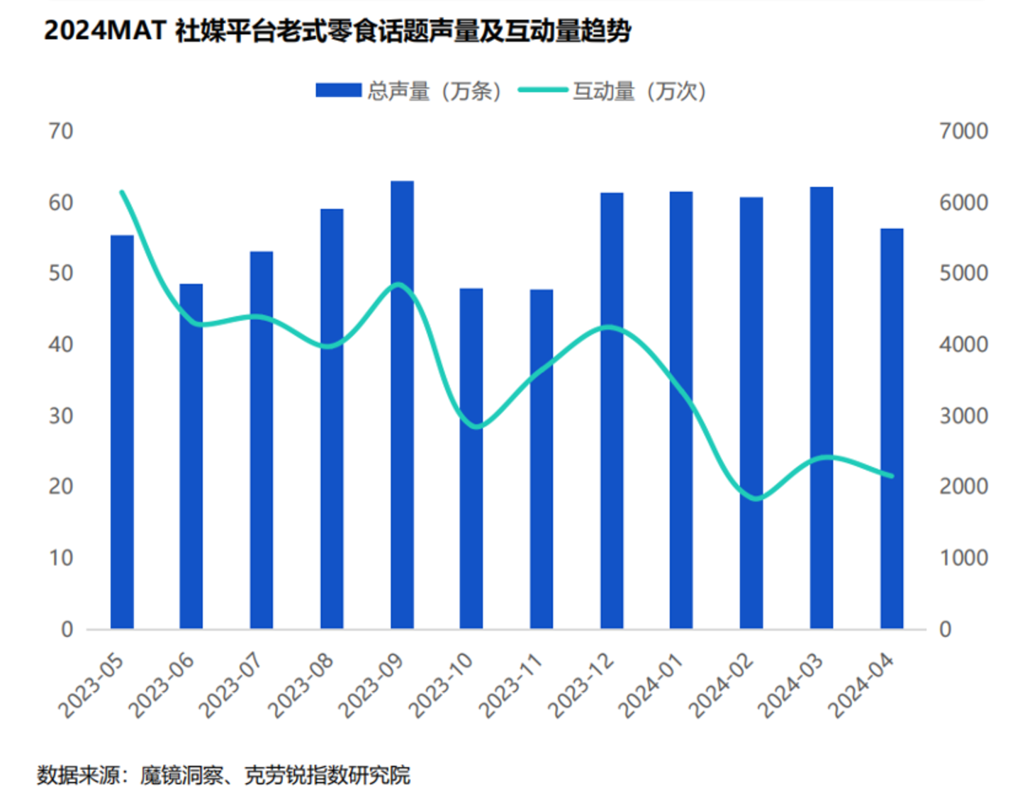 如今,时代虽然在进步,曾经的味道却被部分保留。随着怀旧情怀的兴起,老式零食再度乘上东风,在社媒平台上的传播及影响力持续扩大。根据魔镜洞察发布的《2024休闲零食市场趋势洞察报告》显示,老式零食话题的声量增速达到74.1%,零食话题下童年回忆的声量增速达到107.9%。此外有94.7%的消费者会因为怀旧心情购买小时候的零食,如干脆面、辣条等,53.1%的消费者会因为怀旧零食能满足心情、味道原汁原味而购买。