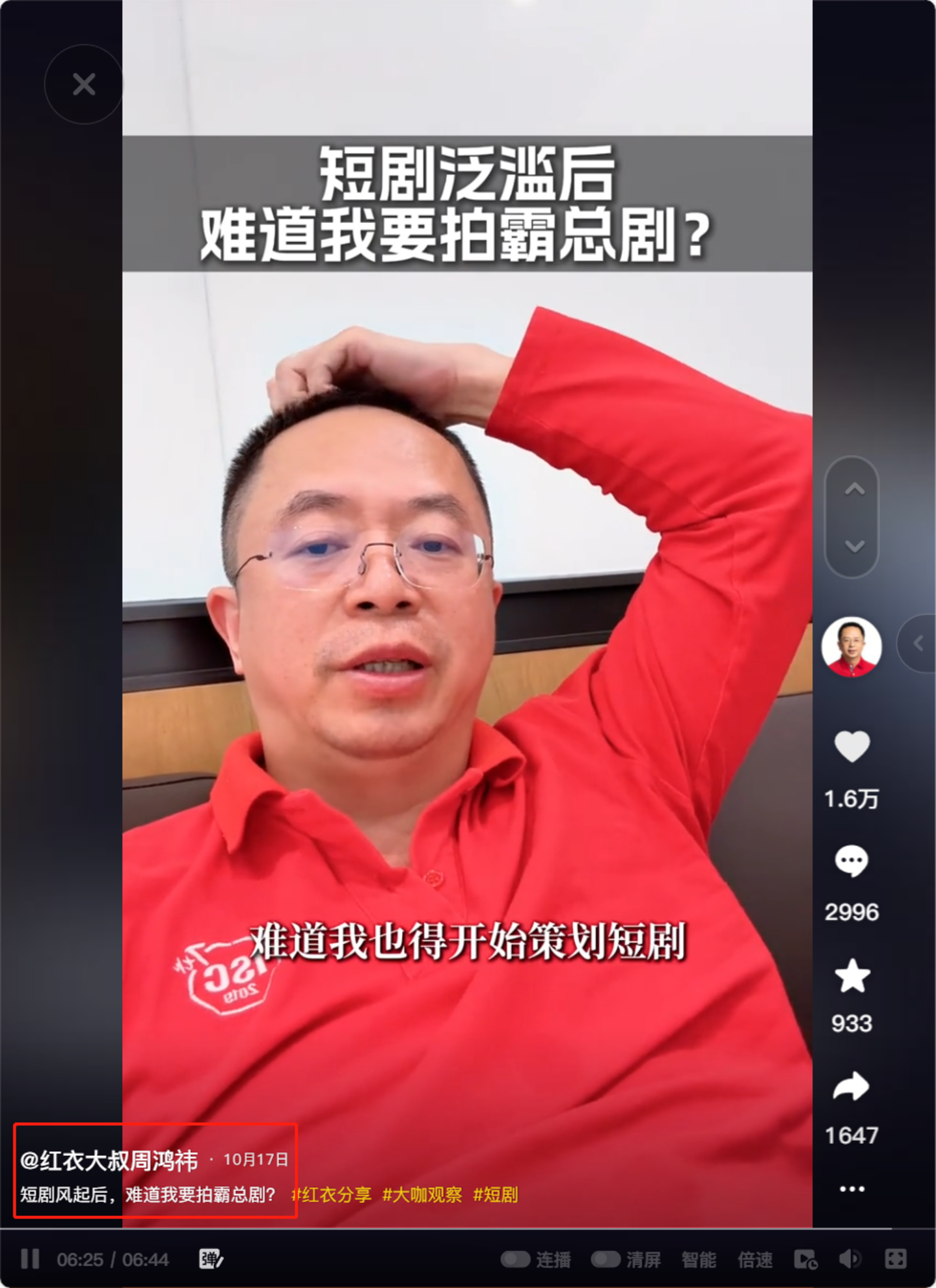 而在发布会现场,周鸿祎更是花了长达40多分钟的时间来发表其对于短剧行业的看法,也表示“企业家做个人IP和短剧都非常重要,后续还会推出精细版本的短剧!”