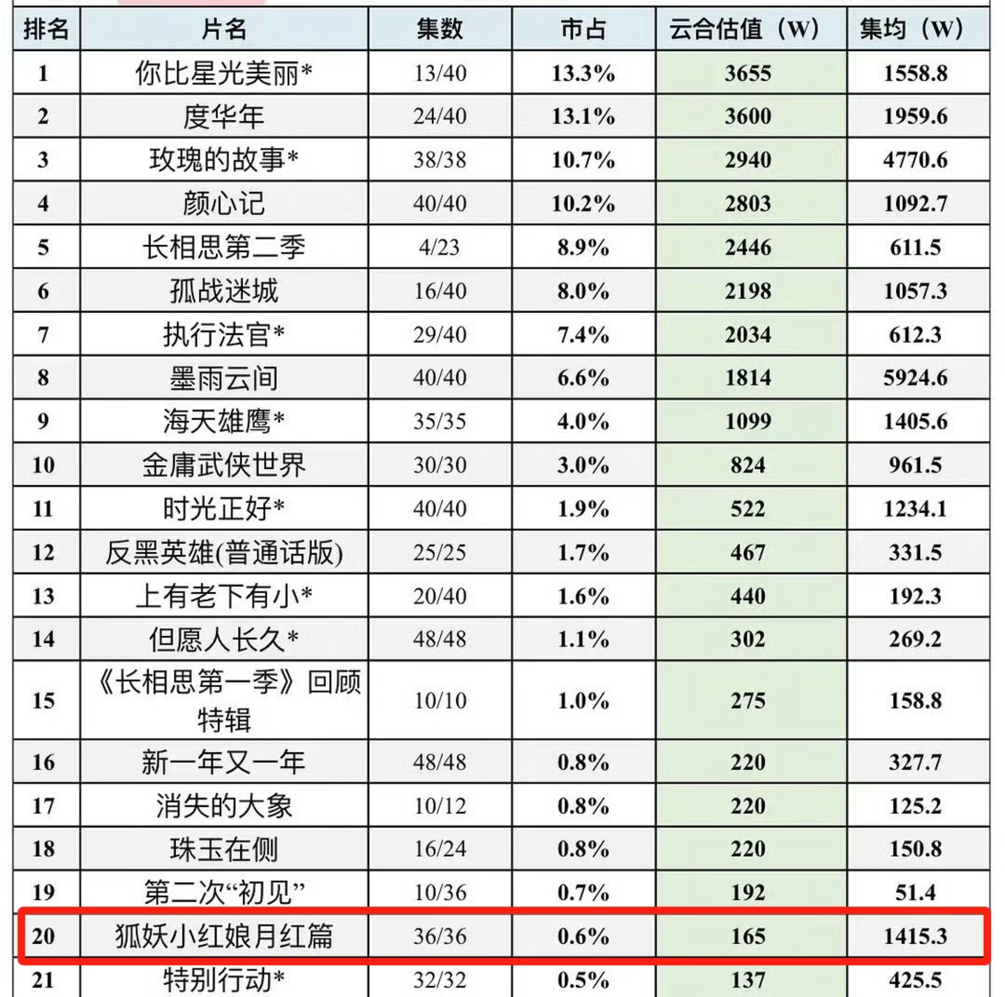 事实上,单看今年遭遇滑铁卢的重量级古装剧配置,足以体会到市场曾对这些项目寄予厚望。例如,爱奇艺重金打造的《狐妖小红娘·月红篇》未开播便吸引到56家品牌合作商进行植入、广告费用高达3亿左右。可惜上线第3天起,《月红篇》的收视便断崖下跌,最后只能以集均1415万的成绩草草收场,令一众投资商大跌眼镜。
