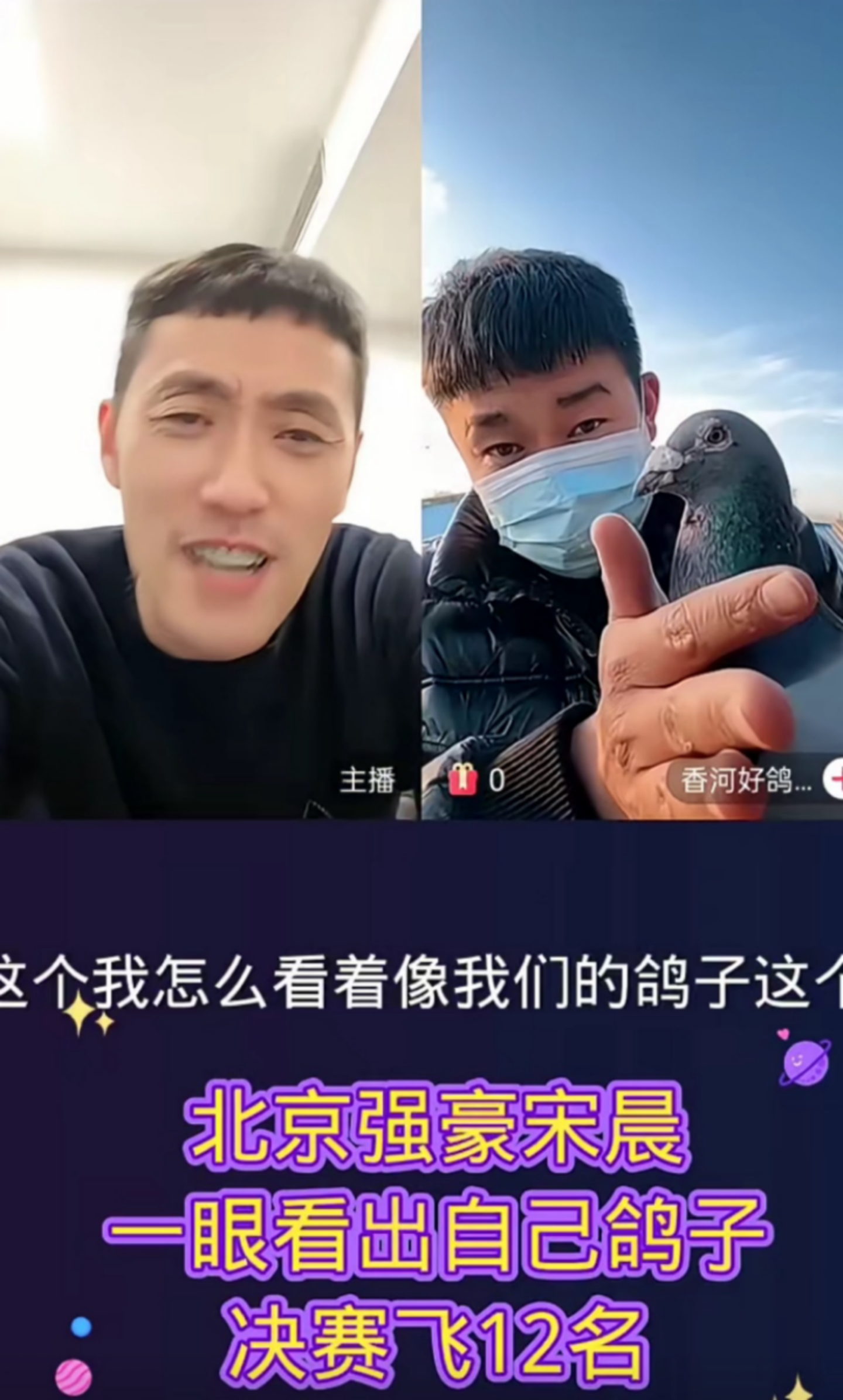 主播@北京宋晨,就是互联网平台直播间鉴鸽的第一人,能通过鸽子眼睛看公母都是常规操作,还能通过鸽子状态看出赛鸽的飞行习惯,对付摸不准脾气的鸽子应该怎么办,哪个鸽子适合配什么品种,哪个鸽子不适合再参加比赛,一切都能在和鸽友连麦的几分钟内飞速解答完。