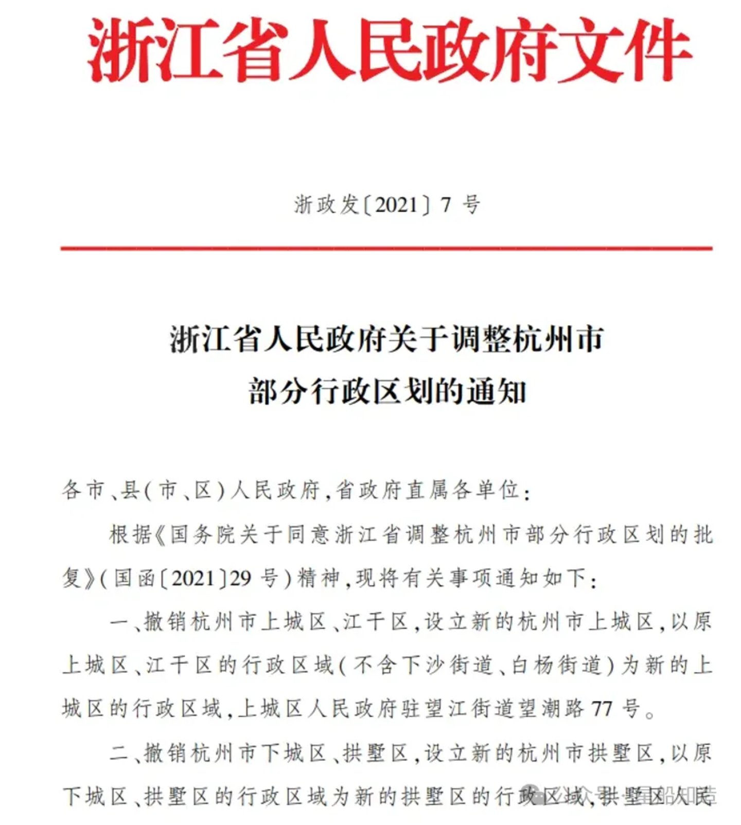2021年杭州设立杭州市钱塘区——钱塘新区从功能区上升为行政区。