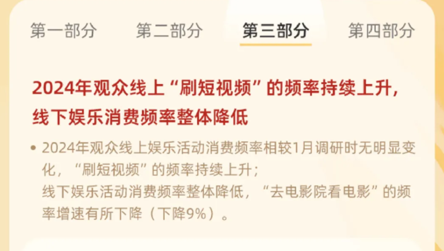 电影作为线下娱乐消费的相对“高门槛”和一部分“低体验”,导致了大众对于电影消费的整体热情下降。