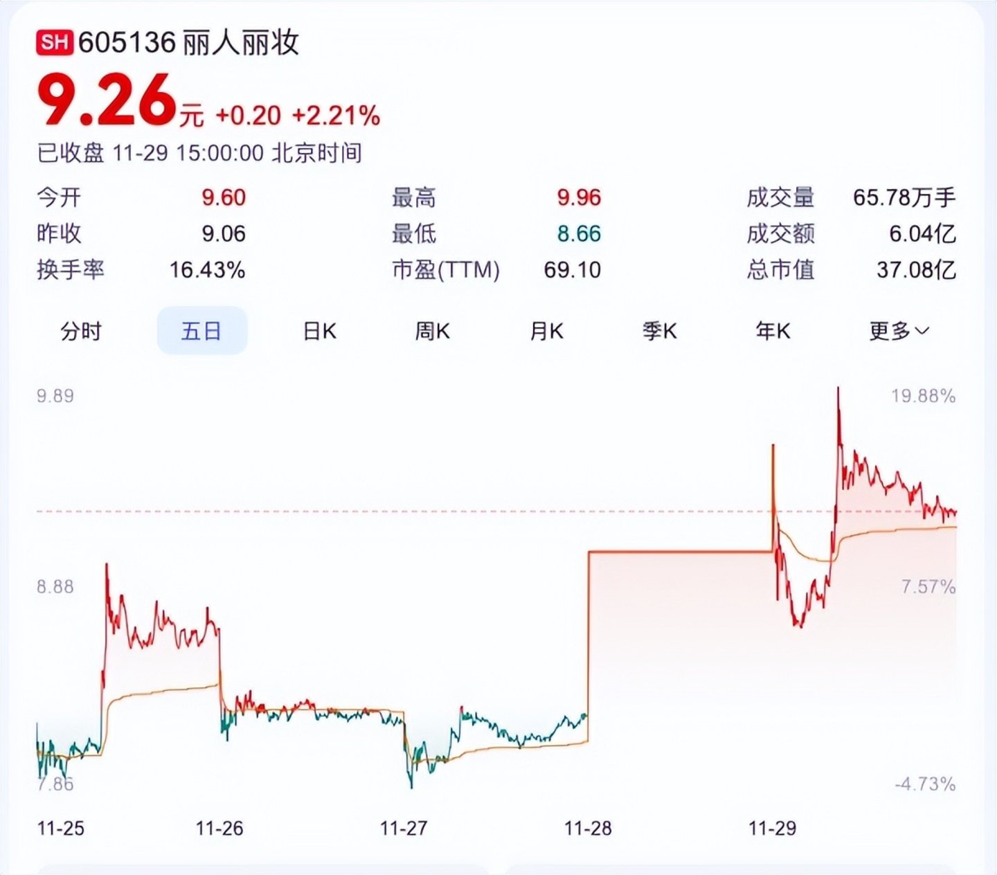 按丽人丽妆11月29日收盘价9.26元/股计算,这些股票市值约为6.5亿元,已经较今年最低点上升了82%,此时公告拟减持,算是瞅准了股价回暖的较佳时机。