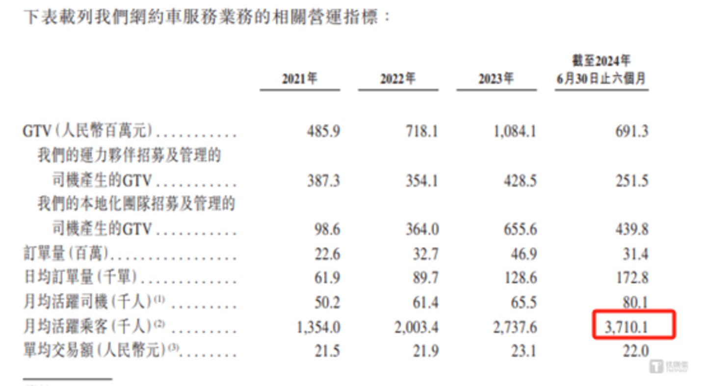 另外,盛威时代网约车服务相关的运营指标,如GTV、订单量、月均活跃乘客等具体数据如下: