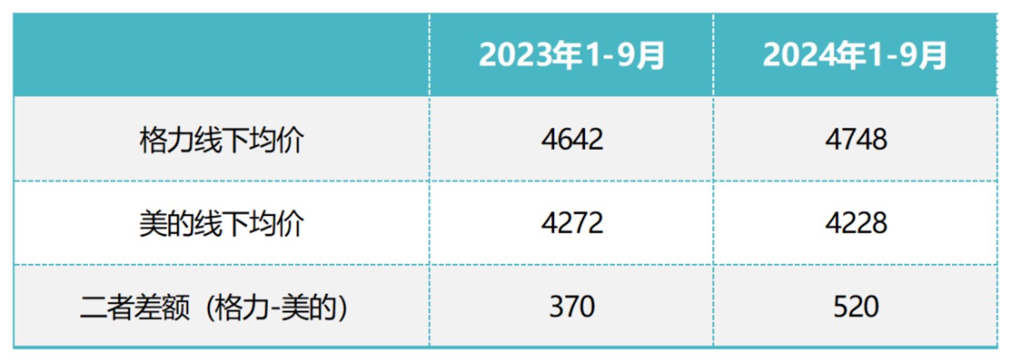 据奥维云网数据,2024年1月-9月期间,格力的线上均价同比下降4.29%至3440元,美的同比下滑3.6%至3106元,格力降幅略微高于美的,但降价后依然比美的均价高。